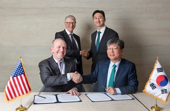 Clockwise from top left: TerraPower founder Bill Gates, HD Hyundai Senior Vice Chairman Kisun Jeong, HD Hyundai Heavy Industries Senior Executive Vice President Kwang-shik Won, and TerraPower president and CEO Chris Levesque (Credit: HD Hyundai)