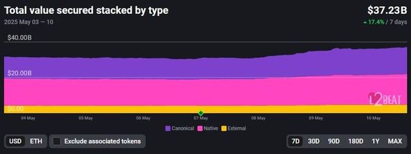 이더리움 기반 레이어2의 총예치자산(TVL)이 지난 일주일 동안 17.4% 증가해 372억3,000만달러(약 52조1,000억원)를 기록했다.11일 블록체인 분석 플랫폼 L2비트(L2BEAT)에 따르면, 가장 높은 TVL을 보유한
