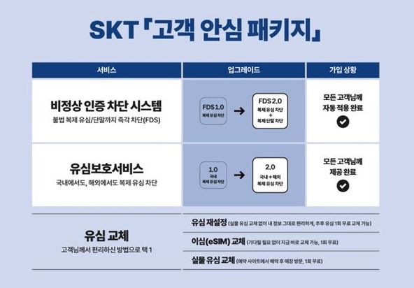 사이버 침해 사고 이후 SKT는 유심교체, 재설정, 찾아가는 서비스 등 ‘고객안심 패키지’를 운영하고 있다. 현재까지 해킹 피해 사례는 단 한 건도 발생하지 않은 것으로 확인됐다.