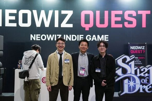 일산 킨텍스에서 열리는 '2025 플레이엑스포'를 찾은 네오위즈 배태근 공동대표(가운데)가 자사 인디게임관에서 지노게임즈 김진호 대표(왼쪽), 리자드 스무디 심은섭 대표(오른쪽)와 기념 사진을 촬영하고 있다. 네오위즈는 지오게임즈가 개발 중인 '안녕서울: 이태원편'과 리자드 스무디가 개발 중인 '셰이프 오브 드림즈'의 퍼블리싱을 맡고 있다. 두 작품 모두 연내 출시를 앞두고 있다. (사진=네오위즈) 네오위즈가 22일부터 25일까지 일산 킨텍스에서 열리는 '2025 플레이엑스포(PlayX4 2025)'에 참가해, 자사 대표작 '브라운더스트2'와 인디 퍼블리싱 게임들을 전면에 내세워 관람객과 적극적인 오프라인 소통에 나섰다.