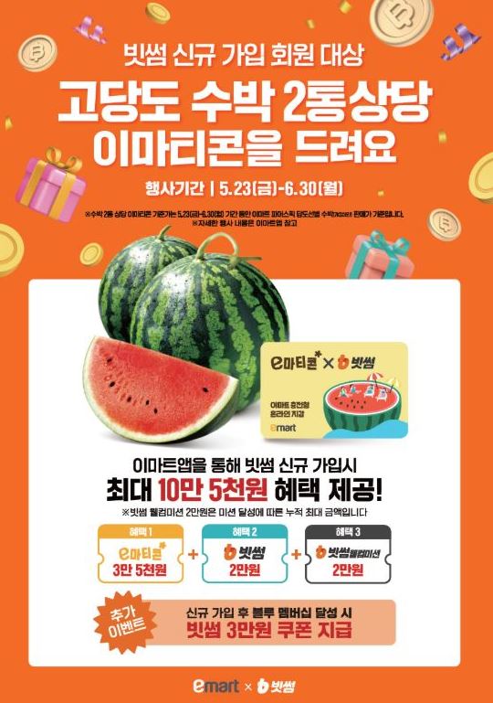 빗썸, 이마트와 최대 10만5000원 혜택 이벤트… 수박 이마티콘 증정