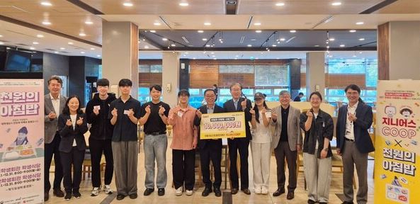 지스트발전재단이 GIST 캠퍼스 내에서 운영 중인 팝업스토어 '지니어스COOP'의 첫 판매 수익금 1,000만원을 GIST의 '천원의 아침밥' 사업에 기부했다. (사진=GIST) 광주과학기술원은 지스트발전재단이 운영하는 팝업스토어 '지니어스COOP'의 첫 판매 수익금 1,000만 원을 '천원의 아침밥' 사업에 기부했다. 이번 기부는 단순한 수익 창출을 넘어 실질적인 학생 복지로 이어졌다는 점에서 의미를 더했다.