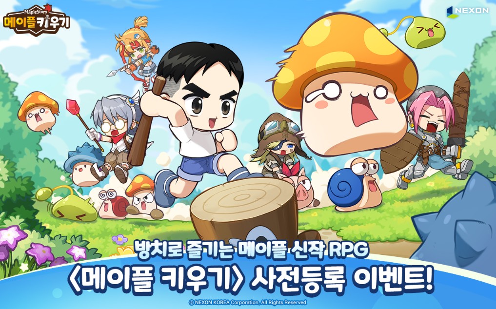 넥슨이 에이블게임즈와 공동 개발한 신작 모바일 방치형 RPG '메이플 키우기'의 글로벌 사전등록을 13일부터 시작한다. (사진=넥슨) 넥슨이 신작 모바일 방치형 RPG '메이플 키우기'의 글로벌 사전등록을 13일부터 공식 홈페이지와 구글 플레이스토어, 애플 앱스토어에서 진행한다.