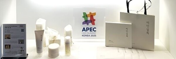 HLB생활건강의 미인실록 제품들이 2025 APEC 정상회의 경제전시장에 전시됐다. (사진=HLB생활건강) 막걸리 쌀지게미를 원료로 사용한 HLB생활건강의 뷰티 브랜드 '미인실록'이 APEC 정상회의의 경제전시장에 전시돼 국내외 참관객들의 관심을 받고 있다.