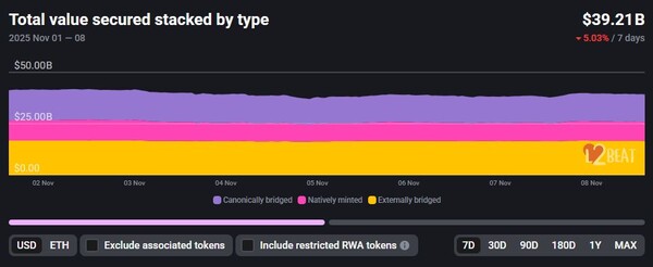 이더리움 기반 레이어2의 총예치자산(TVL)이 지난 일주일 동안 5.03% 감소한 392억1,000만달러(약 57조원)를 기록했다.9일 블록체인 데이터 분석 플랫폼 L2비트(L2BEAT)의 집계에 따르면, TVL 기준으로 가