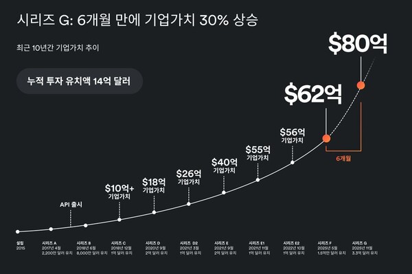 이번 투자는 에디션(Addition)이 주도했으며, 티로웨프라이스, 액티번트 캐피털, 링고토 인베스트먼트 매니지먼트, 로빈후드 벤처스, TIAA 벤처스 등이 참여했다. 기업가치는 80억달러(약 11조7,600억원)로 평가돼 시리즈 F 이후 약 30% 상승했다.