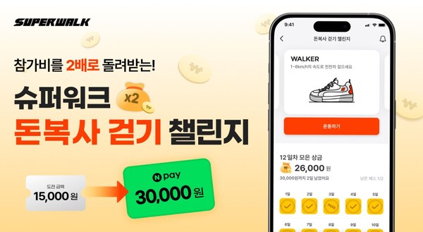 리워드형 웹3 헬스케어 플랫폼 '슈퍼워크'가 하루 10분씩 2주간 걷기 미션을 수행하면 참가비를 2배로 돌려주는 '돈복사 걷기 챌린지'를 진행한다
