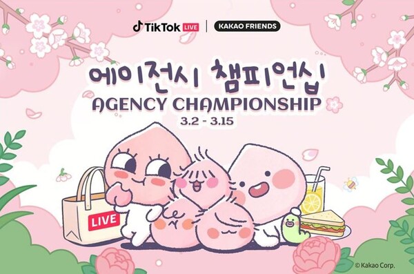 틱톡이 오는 3월 2~15일 카카오프렌즈와 국내 최초 라이브 에이전시들이 대항전 '에이전시 챔피언십 with 카카오프렌즈'를 개최한다.