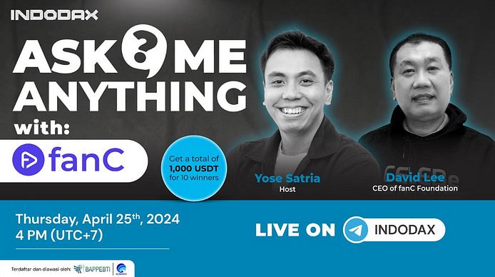 팬시(fanC)는 오는 25일 오후 6시 인도네시아 암호화폐 거래소 인도닥스(INDODAX) 텔레그램 채널을 통해 AMA(Ask Me Anything) 세션을 개최한다고 24일 밝혔다.