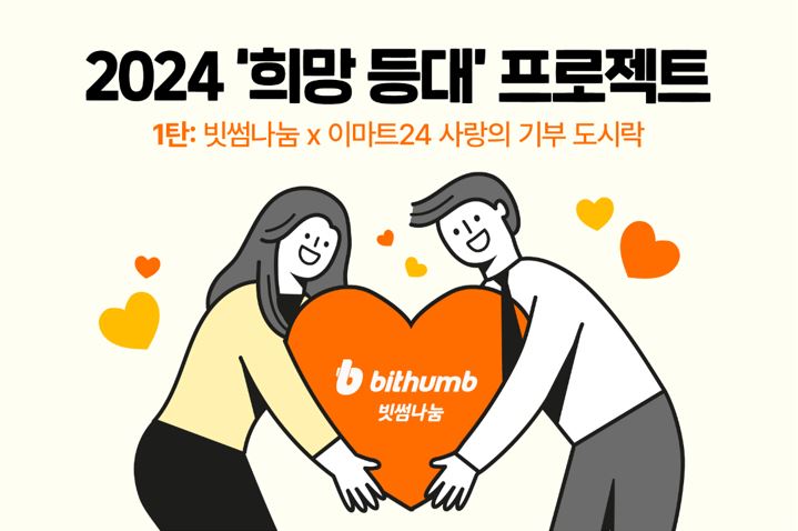 빗썸(대표이사 이재원)은 사회에 따뜻한 나눔을 실천하는 '2024 희망 등대 프로젝트' 일환으로 이마트24와 함께 '사랑의 비트코인 기부 도시락'을 선보인다고 9일 밝혔다.