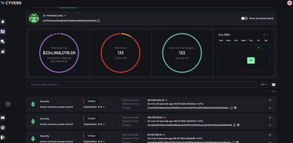 와지르X가 해킹으로 인해 2억3,490만달러 상당의 피해를 입었다. (이미지=Cyvers Alert)