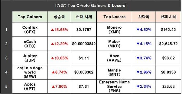 7월 28일 Top Crypto Gainers & Losers (데이터=CoinMarketCap)