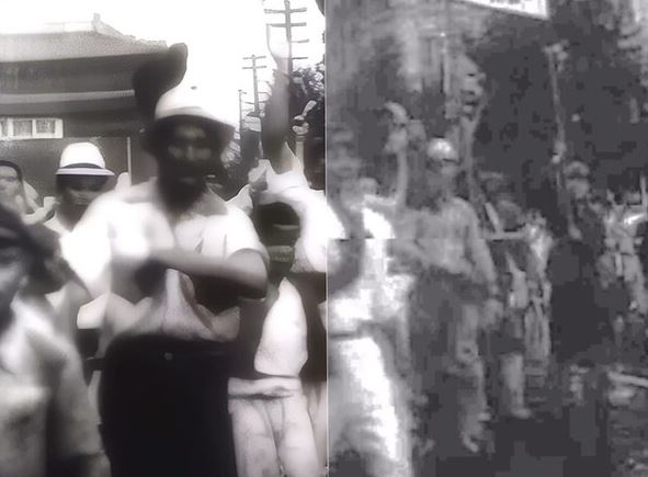 SKT의 AI 미디어 복원 솔루션 '슈퍼노바'를 이용해 품질을 개선한 광복 당시 영상(왼쪽)과 원본 영상 (이미지=SKT)