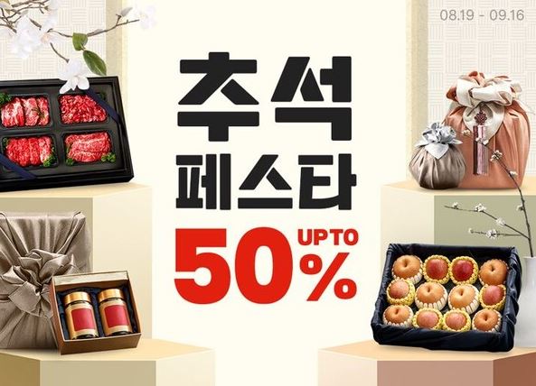 쿠팡이 다가오는 추석을 맞이해 오는 16일까지 '추석 페스타'를 열고 최대 50% 할인 혜택을 선보인다.
