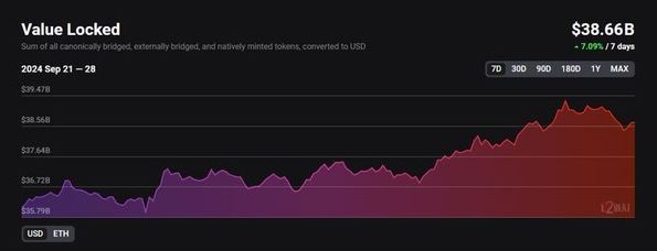 이더리움 레이어2 TVL(총예치자산)이 지난 일주일 새 7.09% 증가한 386억6,000만달러(약 50조7,000억원)를 기록했다.
