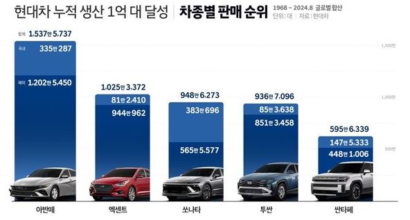현대차 역대 차종별 누적 판매 1~5위 인포그래픽 (이미지=현대자동차)