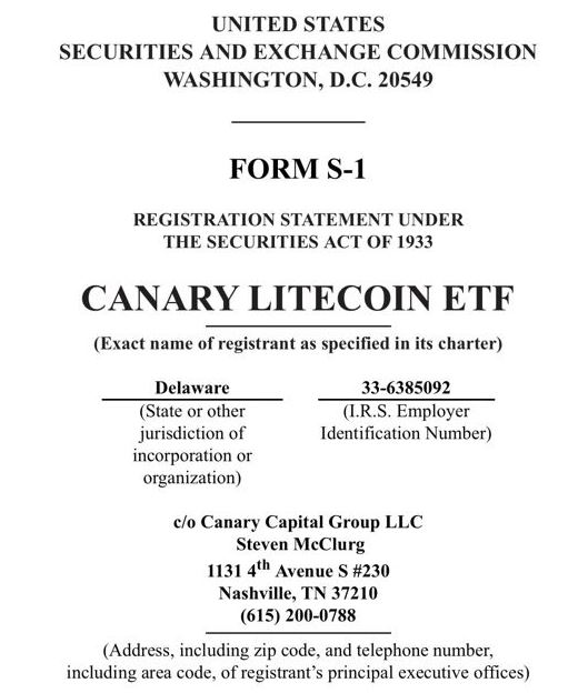 15일(현지시간) 암호화폐 투자사 카나리캐피탈(Canary Capital)이 미국 증권거래위원회(SEC)에 라이트코인(LTC) 현물 상장지수펀드(ETF) 신청서를 제출했다.