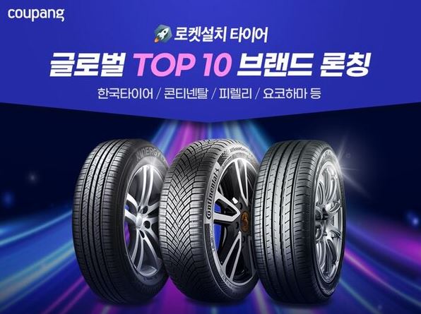 쿠팡이 '타이어 로켓설치'에 국내 매출 1위 브랜드 한국타이어를 비롯해 콘티넨탈타이어, 피렐리타이어, 요코하마타이어, 쿠퍼타이어 등 글로벌 인기 브랜드를 신규 입점시켰다.