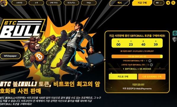 한 해외 유튜버는 비트코인이 100만달러까지 오를 가능성이 있으며, 이에 따라 BTC 불이 큰 주목을 받을 수 있다고 전망했다. 현재 $BTCBULL 프리세일은 단기간에 190만달러 이상 모금하며 인기를 입증했다. 현재 0.002365달러에 구매할 수 있으며, 스테이킹 풀의 예상 연이자율(APY)은 217%에 달한다.