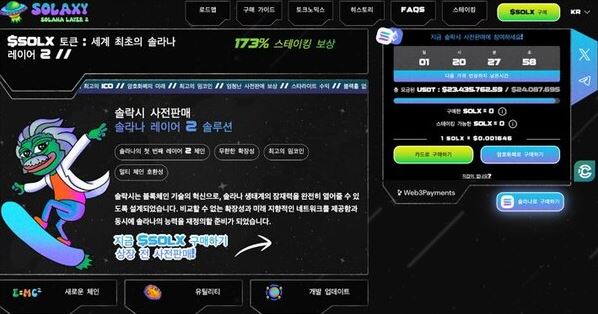 이러한 시장 불안정 속에서도 솔라나의 확장성과 네트워크 효율을 개선할 레이어2(L2) 솔루션 '솔락시(Solaxy, $SOLX)'가 주목받고 있다. 솔락시는 네트워크 혼잡과 거래 실패 문제를 해결하는 것을 목표로 하고 있으며, 개발팀은 이를 위한 주요 업데이트를 정기적으로 발표하고 있다.