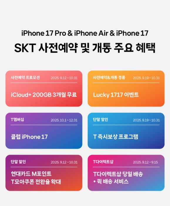 SKT, 아이폰17 시리즈 사전예약 시작… 단말 출고가 최대 70% 보상