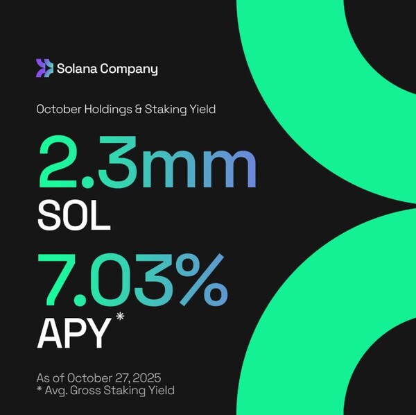 솔라나 비축 기업 솔라나 컴퍼니(Solana Company)는 자회사 포함 총 230만개 이상의 SOL을 보유하고 있다고 29일(현지시간) 밝혔다. 이달 초 대비 약 10만개 증가한 수치다.회사는 약 1,500만달러 상당의