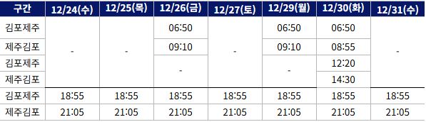 대한항공은 오는 24일부터 31일까지 김포~제주 노선에 마일리지 특별기를 운영한다고 10일 밝혔다. 성탄절과 연말 여행객에게 더 편리한 일정과 마일리지 혜택을 제공한다는 취지다.마일리지 특