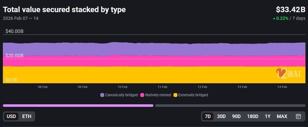 이더리움 기반 레이어2의 총예치자산(TVL)이 지난 일주일 동안 0.22% 증가한 334억2,000만달러(약 48조3,000억원)를 기록했다.15일 블록체인 데이터 분석 플랫폼 L2비트(L2BEAT)에 따르면, TVL 규모가 가장